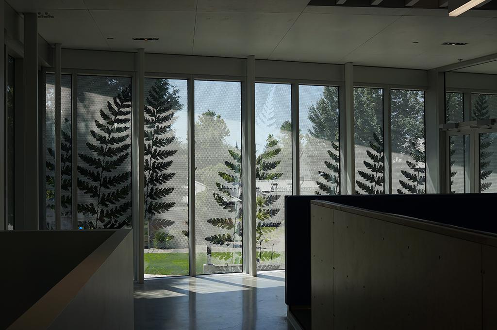 Fern Facade interior second floor, glass frit, 2017, Newton Recreation Centre, Surrey, BC