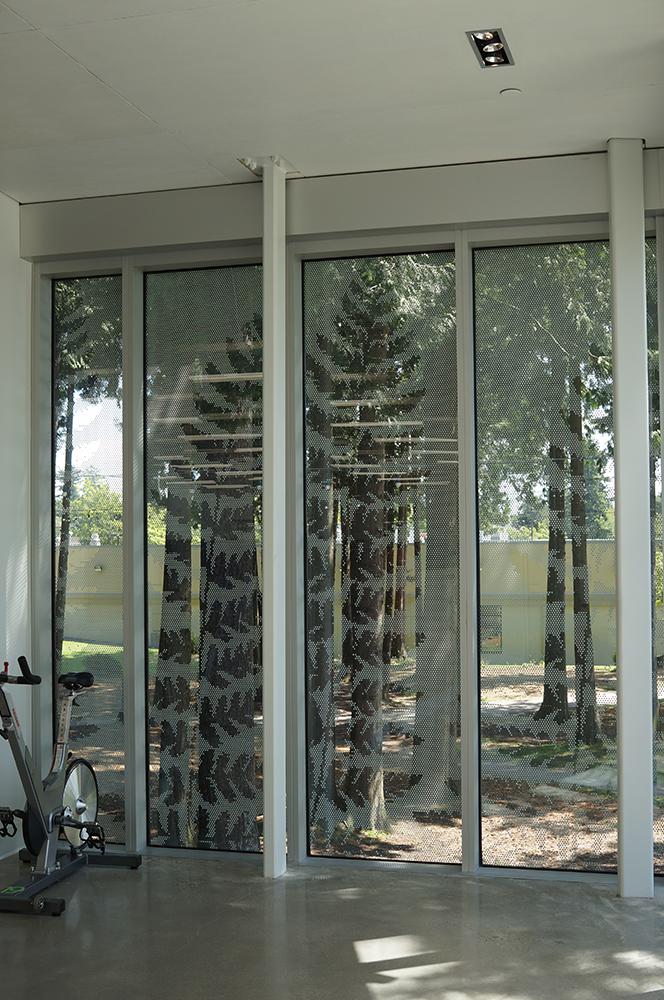 Fern Facade interior east wall, glass frit, 2017, Newton Recreation Centre, Surrey, BC